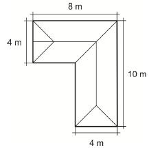 A quantidade de chuva que cai em uma determinada região é comumente medida em milímetros. Cada 1 milímetro de precipitação indica o acúmulo de 1 litro de água num recipiente de seção constante de 1 metro quadrado de área. Muitas residências utilizam sistemas de captação de águas de chuva para resolver a questão de economia de água tratada. Num sistema desses, a chuva que cai nos telhados é toda recolhida por calhas e fica armazenada em reservatório próprio, para uso posterior em descargas de banheiros, lavagens de carros e calçadas, irrigação de jardins e outros. A vista superior do telhado de uma casa é dada na figura. Para o armazenamento da água captada nesse telhado, será construído um reservatório retangular de seção constante, de 1,4 m por 1,0 m, e profundidade suficiente para armazenar toda a água de uma chuva de 30 mm.